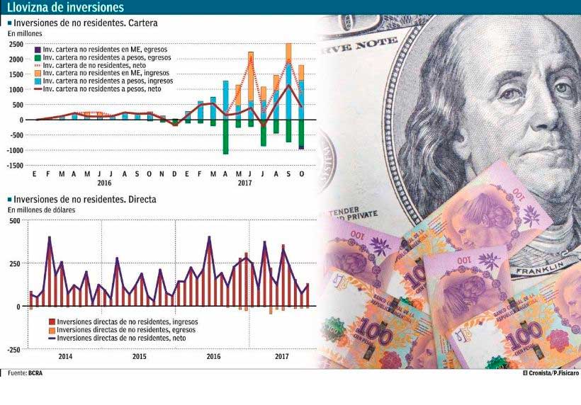 La inversión extranjera directa pasó de u$s 72 millones netos en septiembre a u$s 120 millones en octubre, mientras que la inversión en cartera cayó de u$s 1978 millones a u$s 824 millones en el mismo plazo.