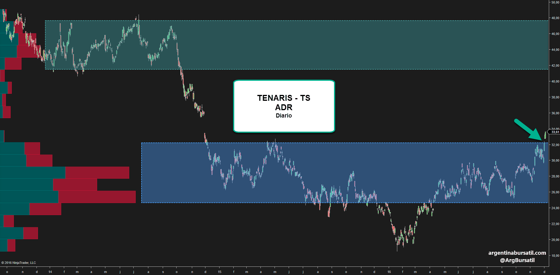 Por otra parte, la cotización local cerró sobre los 32 dólares. De acuerdo a un posteo anterior, donde remarcábamos la importancia de esto debido al patrón de volumen por precio.
